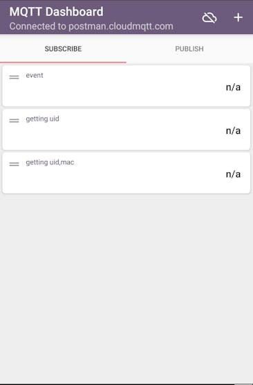 Upon scanning an RFID tag you'll see it's UID being displayed on the MQTT app subscribe section. You can send any random password through publish section of the app to display the password as shown below.